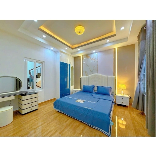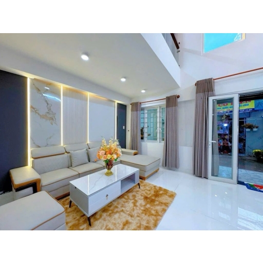 Nhà diện tích công nhận đủ 54m², sổ vuông 5.8x9m nở hậu nhẹ, kết cấu trệt lửng 2 lầu sân thượng, 3PN 3WC (có thể cải tạo 5PN). Nhà đẹp full nội thất, vào ở ngay, hẻm 5m ô tô thông Phan Huy Ích – Nguyễn Tư Giản.